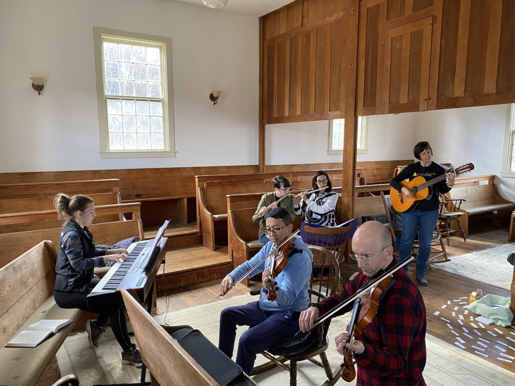 We are a small, welcoming and affirming Mennonite-affiliated community that meets in-person every Sunday evening. You do not need to be Mennonite to attend: our congregation holds a diversity of spiritual identities, denominations, and theologies. Some congregants have dubbed us “faith explorers,” with a common appreciation for inquiry, honest questions, openness, hymn-singing, radical hospitality, and a commitment to peace and social justice. Our services are informal and often planned by lay leadership. Dress is informal as well, so come as you are. We hope to see you soon!
